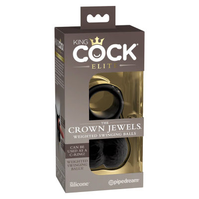 In soft, squishy Elite silicone, the Crown Jewels Weighted Swinging Balls are body safe and extra easy to clean and maintain. Before and after playtime, wash them well with warm soapy water or a good toy care fluid/foam. The Balls are safe to use with any favorite water base lube, but please keep them away from silicone lubes and other silicone toys.