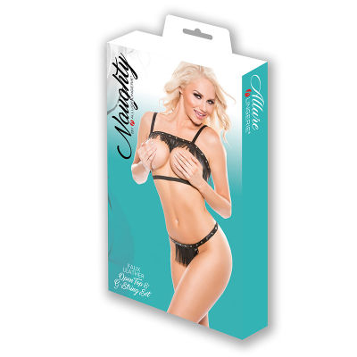 Strappy and open breasted what more could your partner ask for? This set has adjustable straps and an elastic waist and back.