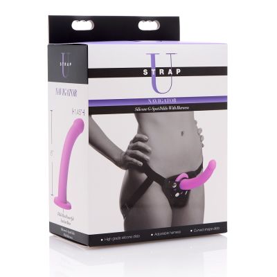 Perfect for pegging or vaginal sex, this strap-on set has everything you need for a comfortable and passionate penetration! Equipped with a sexy, adjustable harness and a silky, non-threatening dildo, you and your partner will be able to delve into new pleasure territory. The harness accommodates many sizes, wrapping seductively around the butt and thighs. A small pocket sits within the inner panel for adding a vibrating bullet if you choose. The dildo is curved for prostate or G-spot stimulation, with a tapered shaft that gradually increases in diameter. This, coupled with the smooth material, will allow for an easy insertion at your own pace. The dong can also be used on its own, with a suction cup base that is perfect for mounting to hard surfaces. Made of silicone, it is non-porous and phthalate-free. Sterilize with mild soap and warm water, but do not use with silicone lubricants.