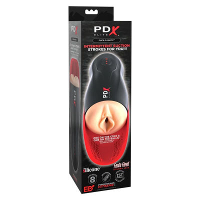 Waiting inside (and a little outside)a sturdy case complete with travel-friendly cap, the F**k-O-Matic's super soft Fanta Flesh vagina sleeve invites you into a veritable wonderland of sucking, vibrating action. Once activated with a dedicated 'S' button, five possible rhythms of suction get to work engulfing every inch of your shaft. For a hit or two of vibration, press the 'V' button to explore ten built-in modes. Not only will you feel the buzz from deep inside, you'll also feel it against your balls, thanks to an attached silicone tongue tickler below. Vibration is synchronized between both internal and external motors.