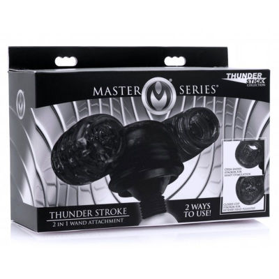 How long can you withstand this accessory that turns a massage wand into two tantalizing male sex toys? Perfect for orgasm denial or forced orgasm on your own or with a partner, this attachment slips easily over the head of a standard sized wand vibrator, providing two textured strokers that will thrum with the same incredible power as your massager. One stroker features a closed cup to target the head of the penis for pleasure, lined with soft tendrils to tickle and tease. The other stroker is open-ended to pleasure the entire shaft, lined with stimulating nubs for an unbearably intense massage with every thrust.