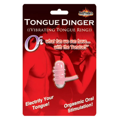 TONGUE DINGER The "Original" Vibrating Tongue Ring known the world over! It was also featured on the "TONIGHT SHOW" with JAY LENO! It is specifically designed to provide MAXIMUM PLEASURE by use of the Tongue! Comes with a Super powerful motor and sensuous stretchy silicone, which is sure to please and tease both partners during intimate play time! Don't be fooled by the rest... Stick with the Best! Fits Snug on to any Tongue. WARNING: May Cause Intense Screams of Pleasure!! Use With Caution!