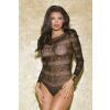 Tough Love. Floral and fishnet pattern stripe teddy with long sleeves.