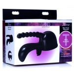 Experience triple the stimulation pleasure from your wand massager rather than just a single point of pleasure with the addition of the superb Triple Pleaser Wand Attachment that brings new excitement to your playtime. The stunning Triple Pleaser Wand Attachment will fit snugly over the head of most wand massagers that are available on the market and feature a curved g spot massaging arm, a clitoral teaser and an anal probe. The fabulous Triple Pleaser Wand Attachment has been manufactured in black thermoplastic rubber and the g spot arm measures 3 inches and the anal probe measures 3.25 inches. Length: 6 Inches Washing: Hot soapy water and toy cleaner Insertable: 1 to 5 inches Flexibility: Slight For Who: Female Material: Rubber Brand: Various Toy Brands Size: 6 Inches